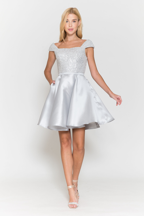 This fitted cocktail dress features a lace overlay with a strappy lace-up back. Pair this dress with simple accessories to complete the look at your next homecoming, sweethearts or formal event.  ACE 7010S